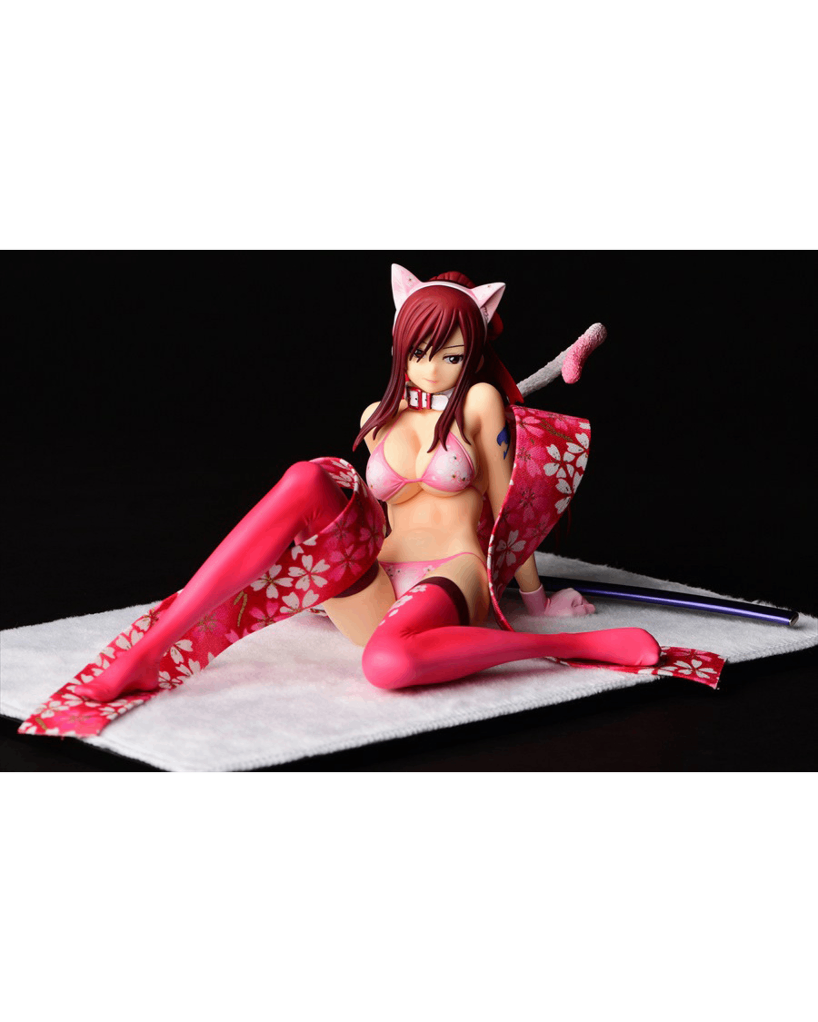 Erza Scarlet from "Fairy Tail" furthers her career as a gravure model with this "Sakuraneko" figure! She poses provocatively in a bikini, wearing a cat-ears headband, gloves, and thigh-high stockings, all in varying shades of pink and bedecked with beautiful cherry blossoms! An obi is draped around and behind her for added drama, and she's holding her sword behind her, too, just in case. Her soft fabric base is included.