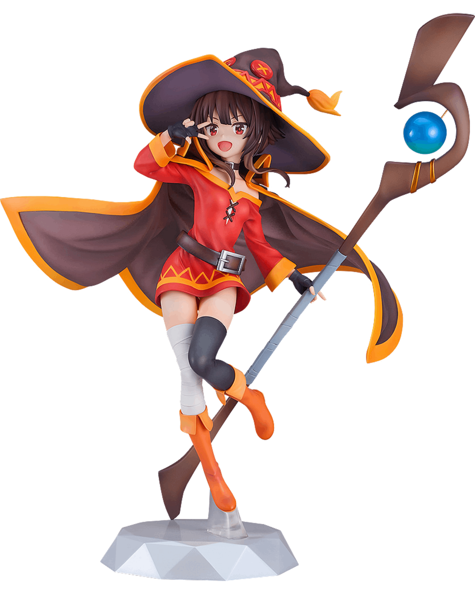 This might just be the ultimate figure of Megumin from "KonoSuba"! The world's strongest arch-wizard who loves Explosion Magic, she's seen in the adventurer's outfit she typically wears in the anime. Her characteristic pointed hat, black cape, and large staff will draw your attention, and her confident smile and dancing pose will make you fall in love with her all over again! Her base is included.