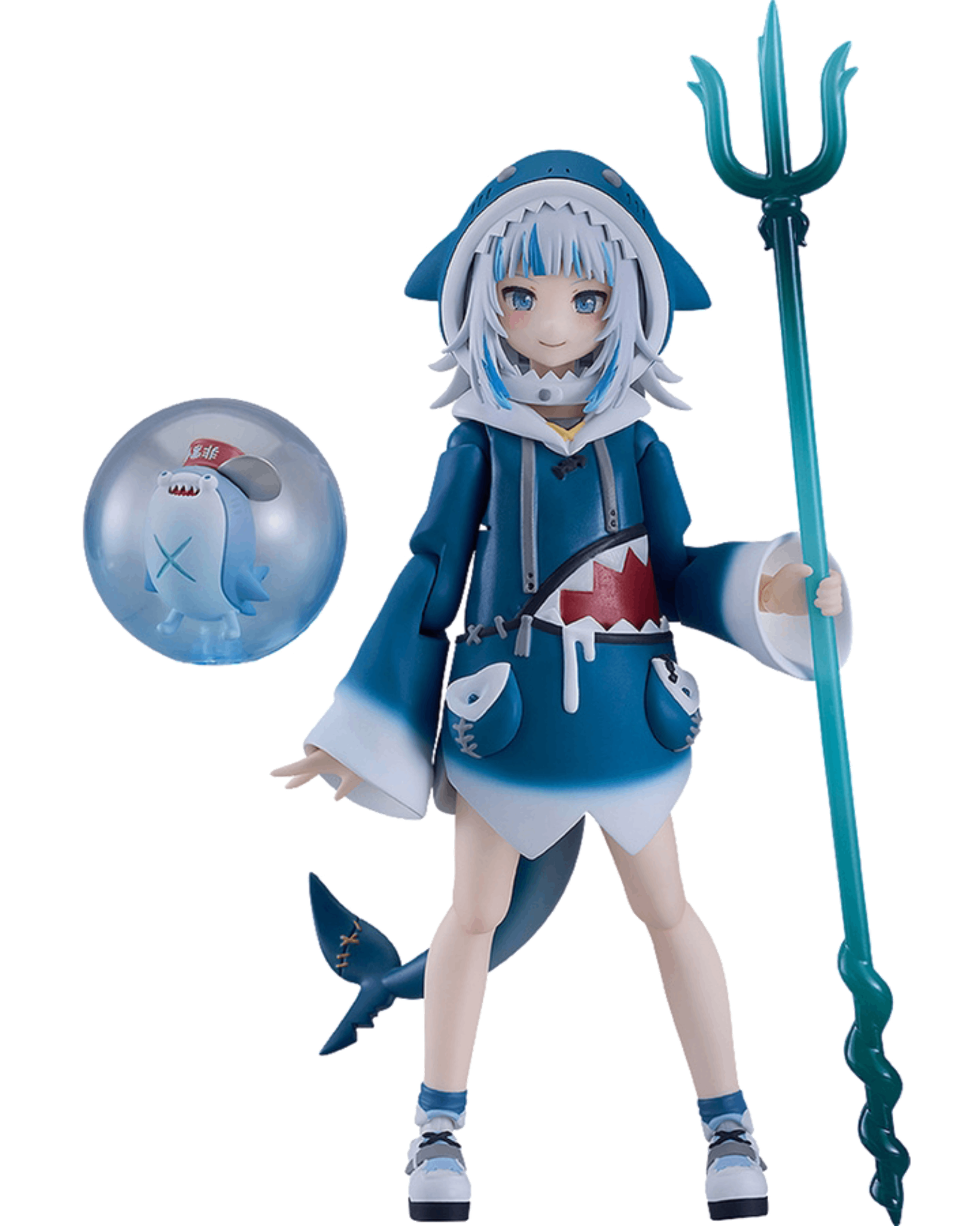 Gawr Gura, the highly popular member of the "hololive production" virtual YouTuber team, is now joining the "figma" figure lineup from Max Factory! Her three interchangeable faces include a smile, a smile with closed eyes, and an open-mouthed smile. Her friend Bloop is along for the fun too (in his protective water bubble), and she also comes with a trident and a head part without a hood, as well as four pairs of interchangeable hands and a stand for display.
