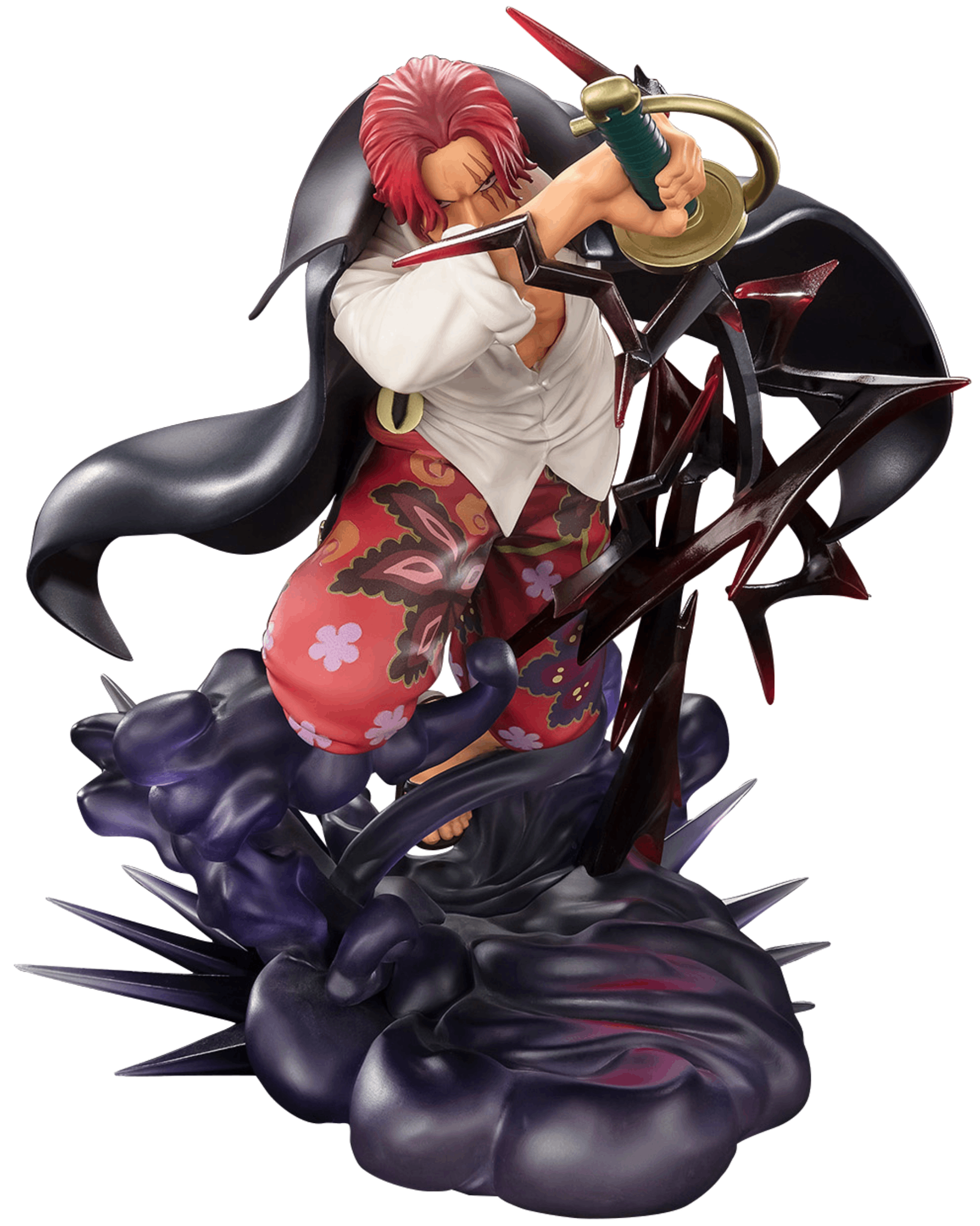 hanks from "One Piece," the captain of the Red Hair Pirates and one of gthe Four Emperors, joins the "Figuarts Zero" display figure lineup from Bandai! He's flying through the air, preparing to unleash his Kamihiki attack, with dynamic effect parts!